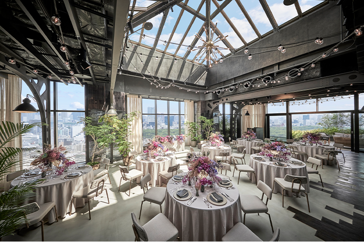 - ホテルの最上階にある、NYのインダストリアルなテイストの会場。 テラスで寛ぐこともできる、アットホームな会場です。